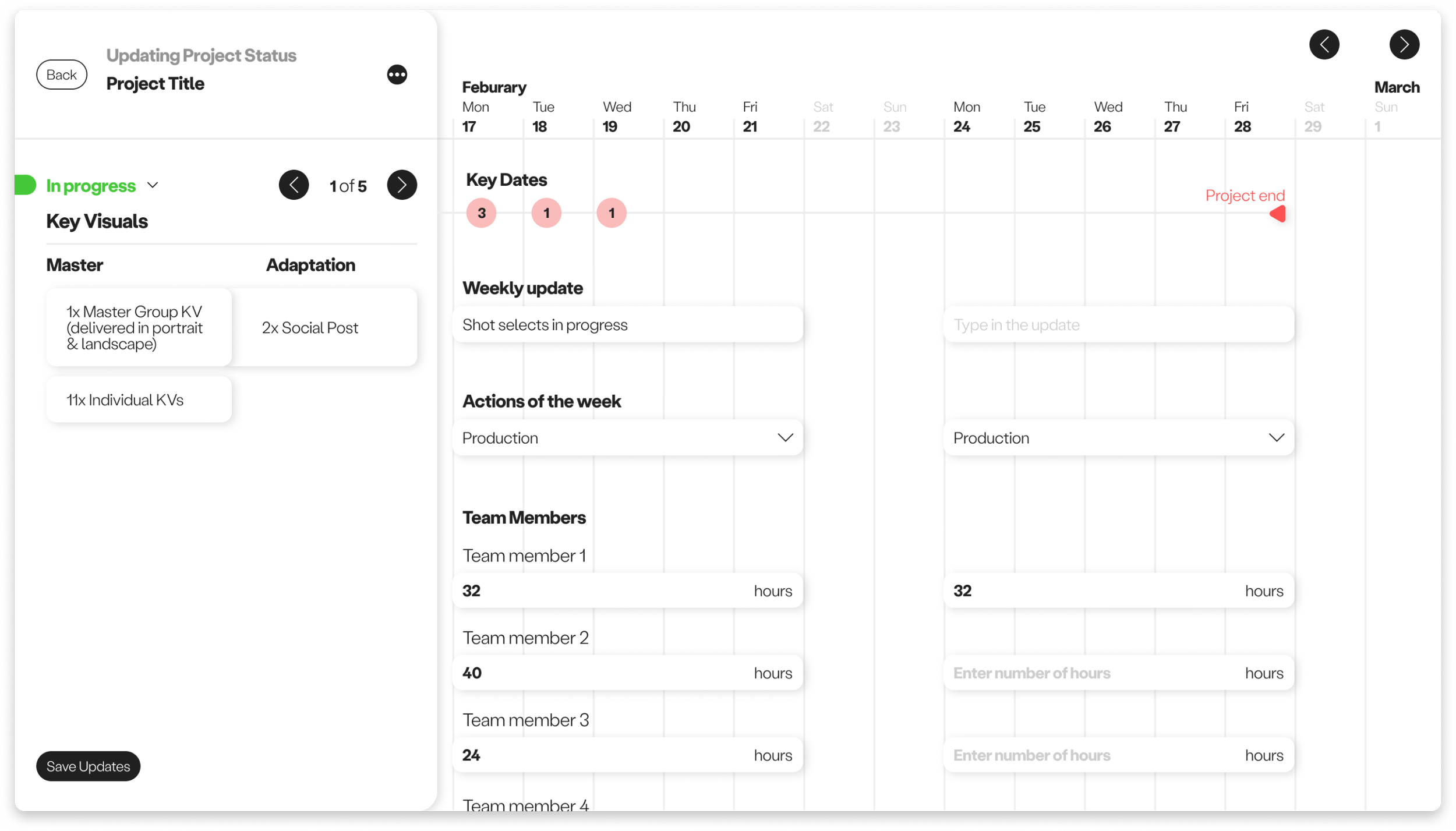 Project Key dates in a monthly view for project managers to plan and avoid overloading
